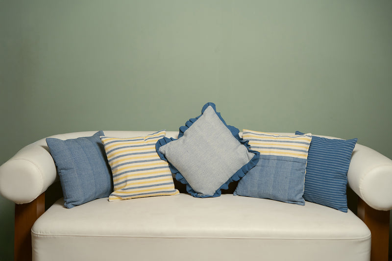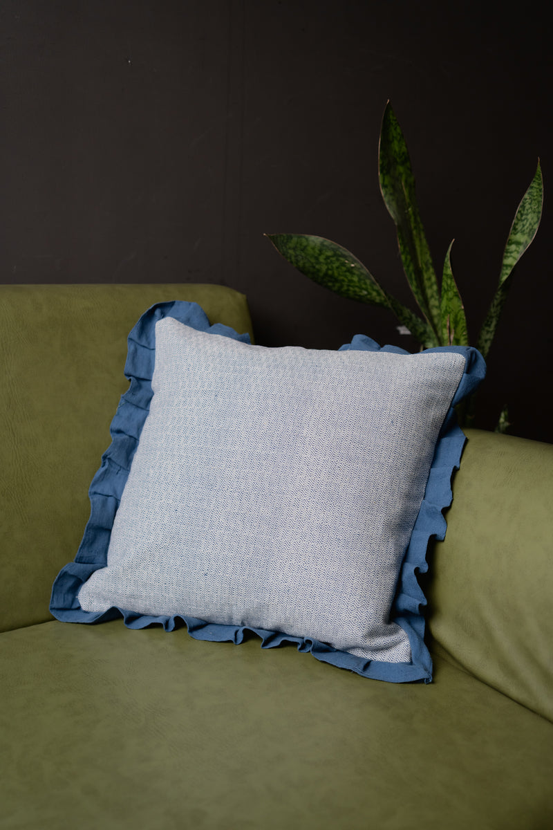 Diamond Handwoven Indigo Ruffle Cushion Cover Sale