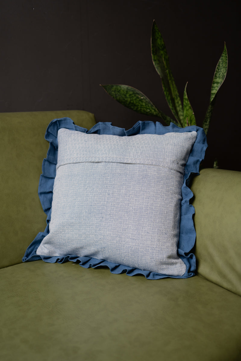 Diamond Handwoven Indigo Ruffle Cushion Cover - 16 x16 Inch