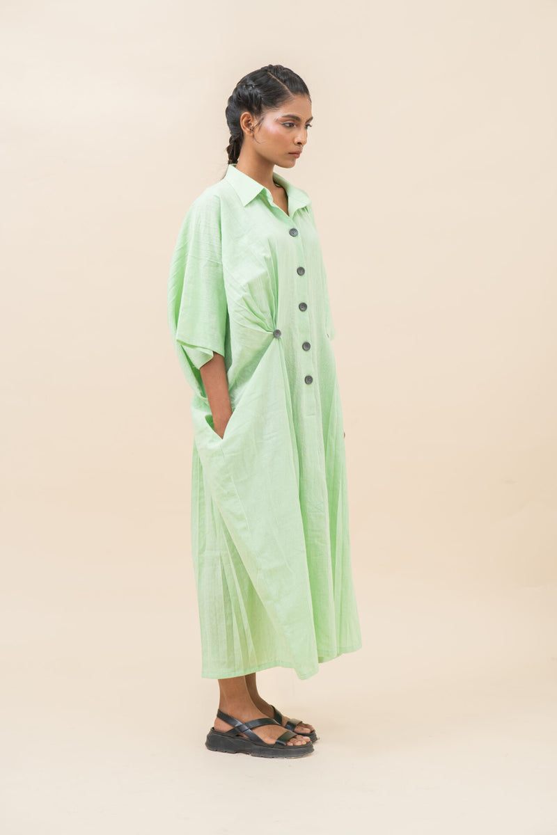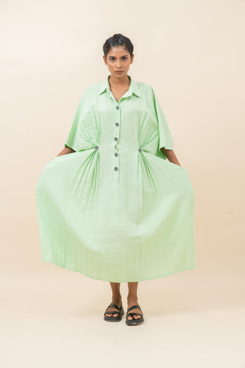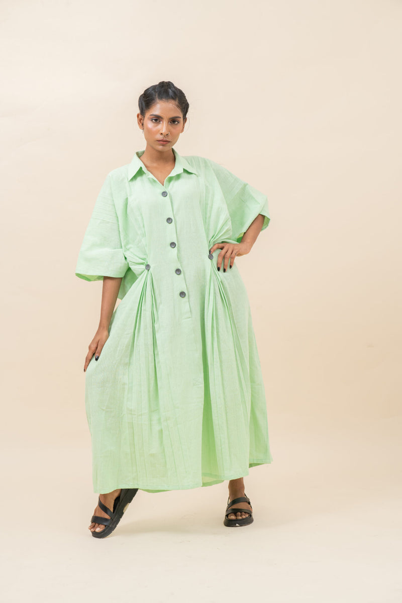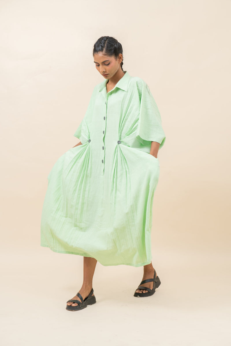 Classic Pressed Knife Pleated Dress | Pista Green - XS