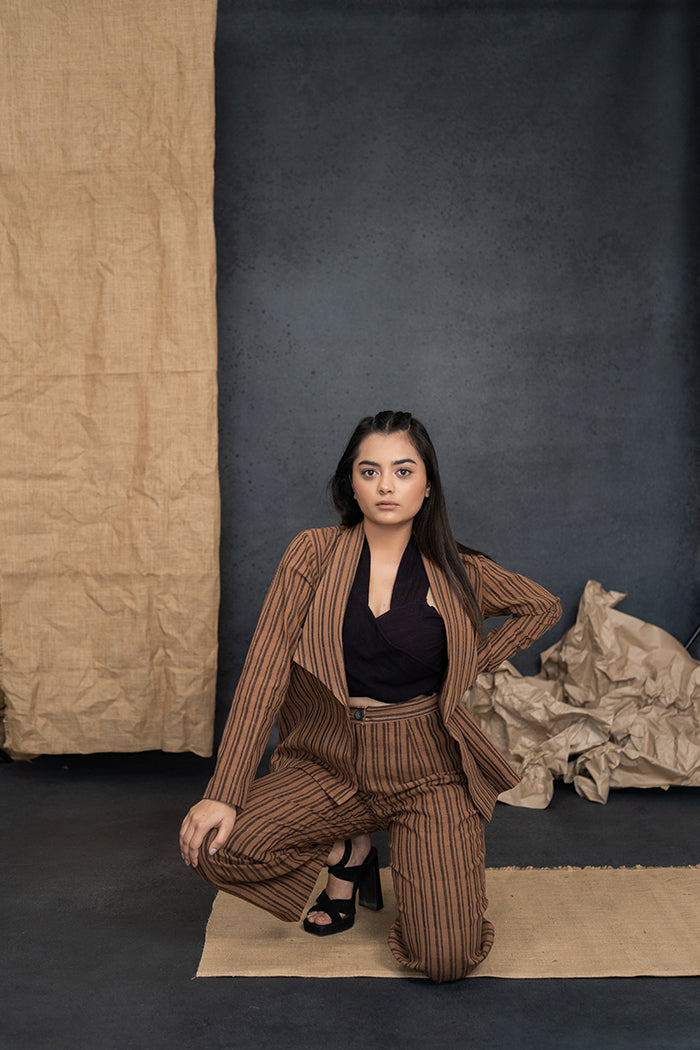 Handwoven Kala Cotton Brown Suit Coat Sale